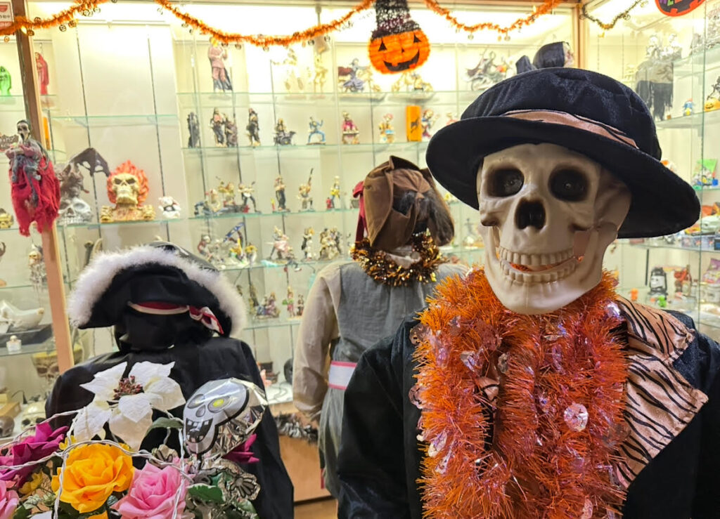 世界各国から集められた頭蓋骨コレクション。ボタンを押したら動くおもちゃや音に反応するおもちゃなどがあり、お子様も楽しめます。またブラックライトの一角があり、カーテンを引くと独自の空間が楽しめます。また、東南アジアで実際に使われている祭りの道具など文化的要素も楽しめます